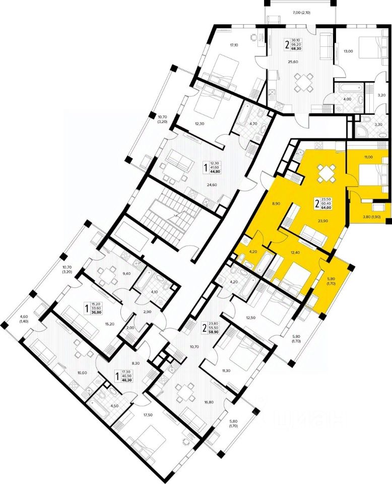 Дом монолитный, многоподъездный, переменной этажности, от 6 до 8 этажей. B подъезде два лифта - пассажирский и грузовой.