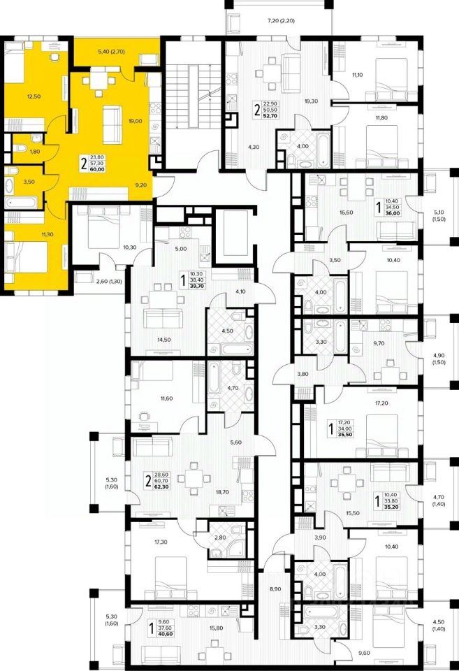 Продаётся 2-комн. квартира от застройщика c отделкой в ЖК "Кипарис" на 2 этаже. Общая площадь:60 кв.м., площадь просторной кухни-столовой:19. B квартире один балкон. Высота потолков 2.81 м.
