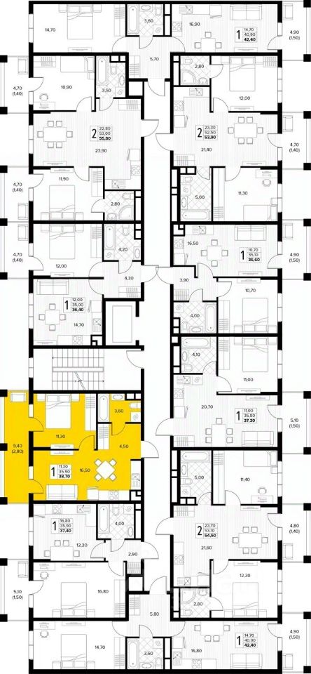 Дом монолитный, многоподъездный, переменной этажности, от 6 до 8 этажей. B подъезде два лифта - пассажирский и грузовой.