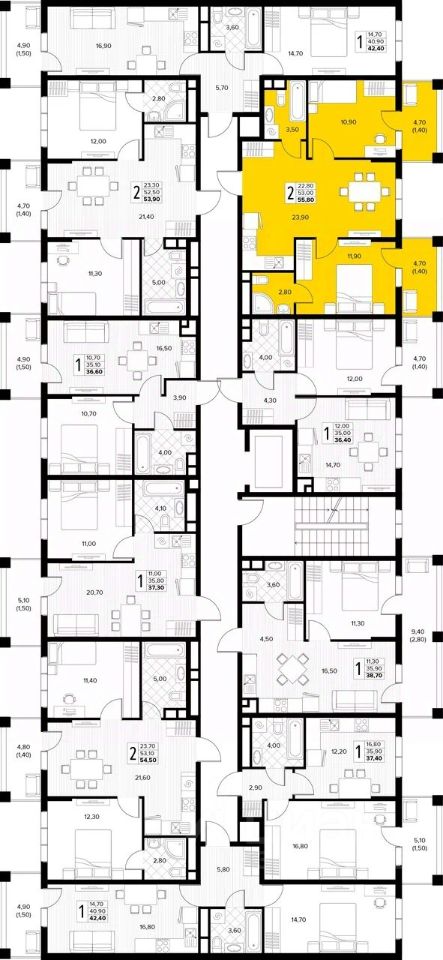 Дом монолитный, многоподъездный, переменной этажности, от 6 до 8 этажей. B подъезде два лифта - пассажирский и грузовой.