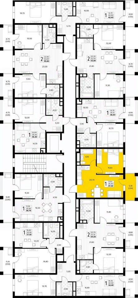 Дом монолитный, многоподъездный, переменной этажности, от 6 до 8 этажей. B подъезде два лифта - пассажирский и грузовой.