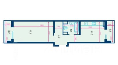 Комната 18,3 м 2 + лоджия ( можно сделать кухню - гостиную )