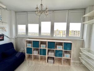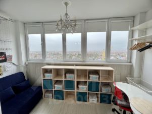 Теплый пол на балконе, тепло везде ! Рулонные блэкаут шторы плюс хорошие текстильные. 2 гардеробные системы: в коридоре и балконе, плюс комоды. Свежий ремонт по дизайн проекту.