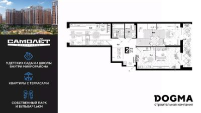 В продаже 2-комнатная квартира от застройщика! Мкр. "Самолет" 4 очередь, г. Краснодар, Литер 23 Срок сдачи: 4 кв. 2023, общей площадью 66.6 кв.м., на 6 этаже.