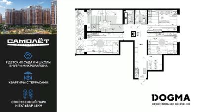 В продаже 3-комнатная квартира от застройщика! Мкр. "Самолет" 5 очередь, г. Краснодар, Литер 29 Срок сдачи: 2 кв. 2024, общей площадью 78.1 кв.м., на 9 этаже.