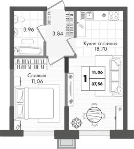 1-комнатная квартира, как 2-комнатная в жилом комплексе Зеленая территория от надежного застройщика СЗ Флагман в Краснодаре.