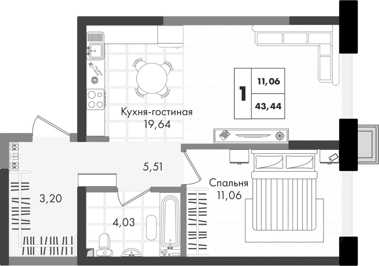 Общая площадь43,44 м²