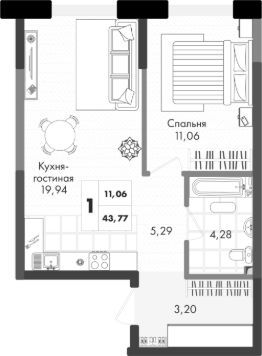 1-комнатная квартира, как 2-комнатная в жилом комплексе Зеленая территория от надежного застройщика СЗ Флагман в Краснодаре.