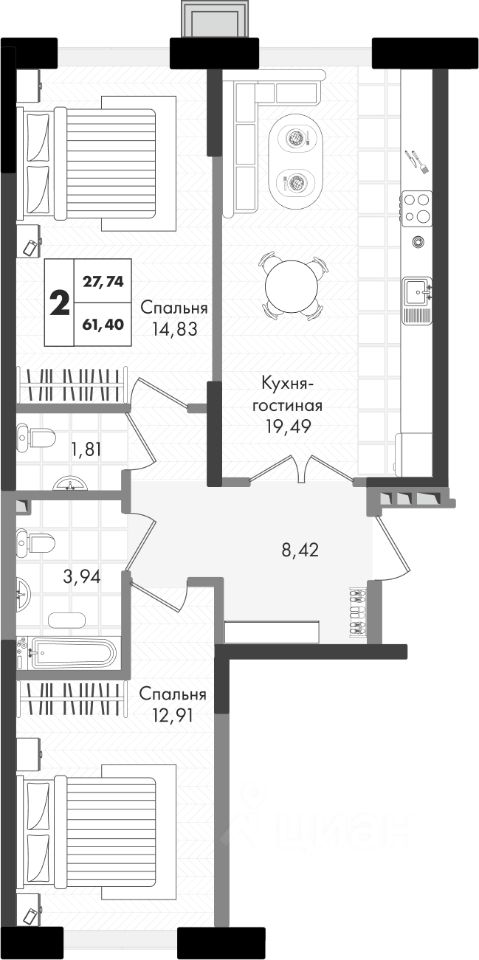 2-комнатная квартира с большой кухней-гостиной в жилом комплексе Зеленая территория от надежного застройщика СЗ Флагман в Краснодаре. Покупка квартиры в ЖК Зелёная территория это : дворы без машин с большими детскими площадками; баланс природы и городской среды; библиотека, конгресс-центр, фитнес-центр; много парковочных мест, наземная многоуровневая парковка; выделенная велосипедная дорожка на длинной прогулочной аллее в собственном закрытом от посторонних парке; зарядные станции для автомобилей; спортивные площадки для детей и взрослых; собственный парк на территории комплекса - 1,2 Га; ТРК Красная площадь, Леруа Мерлен - 10 минут на машине; школа в 2 минутах ходьбы от дома; 3 минуты до детского сада; рядом находятся ледовый дворец Iсе Раlасе, спортивный комплекс "Баскет Холл", школа ЦСК и теннисные корты; выезд на Ейское шоссе - дорога на море за час без пробок. За более чем 20 лет группа компаний Флагман построила: 9 ЖК, 4 200 квартир 24 многоэтажных дома 2 коттеджных посёлка 7 коммерческих БЦ Подберите 2-комнатную квартиру по вашим параметрам в ЖК Зелёная территория от застройщика СЗ Флагман. Звоните или нажимайте Заказать звонок - мы сформируем подборку планировок, просчитаем стоимость ежемесячного платежа и пришлем вам.