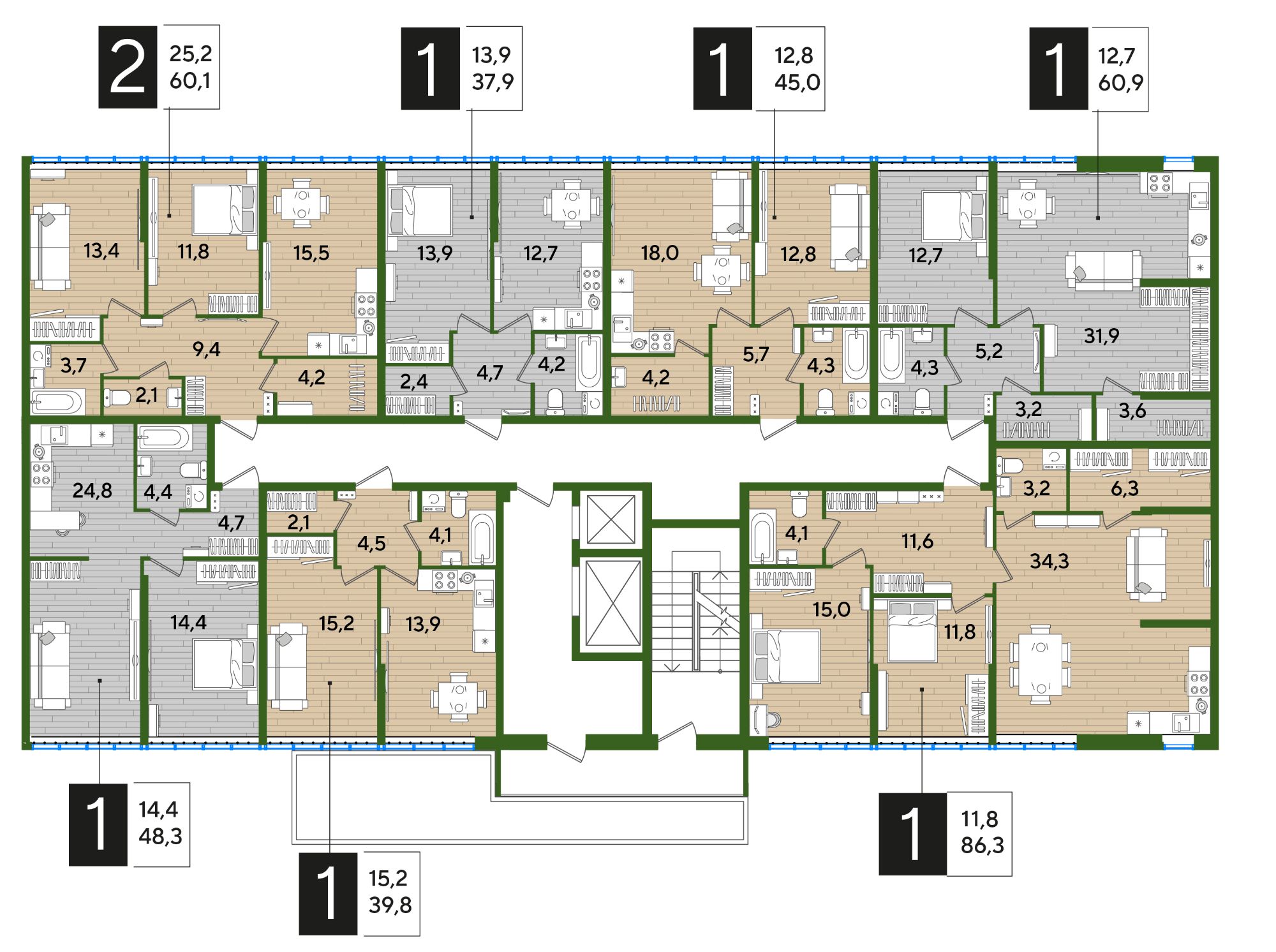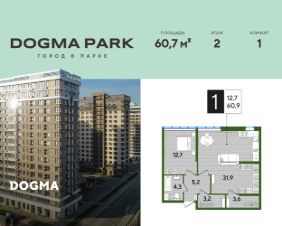 В продаже 1-комнатная квартира от застройщика! Мкр. "DOGMA PARK" г. Краснодар, Литер 9 Срок сдачи: 4 кв. 2026, общей площадью 60.7 кв.м., на 2 этаже.