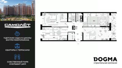 В продаже 3-комнатная квартира от застройщика! Мкр. "Самолет" 5 очередь, г. Краснодар, Литер 28 Срок сдачи: 2 кв. 2024, общей площадью 83.7 кв.м., на 3 этаже.