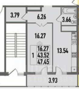 Квартира находится на 19 этаже . Из окон открываются потрясающие виды.Планировка: общ. S=47,4 м.