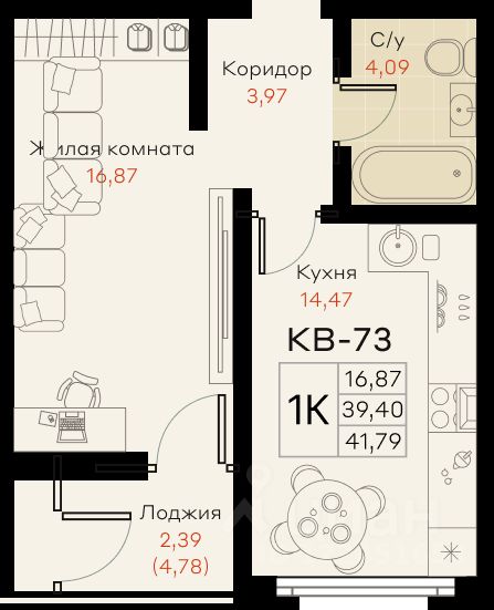 Общая площадь41,79 м²