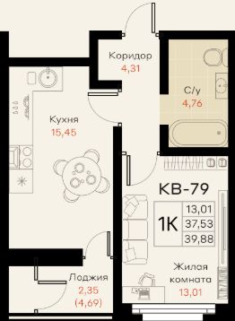 Общая площадь39,36 м²