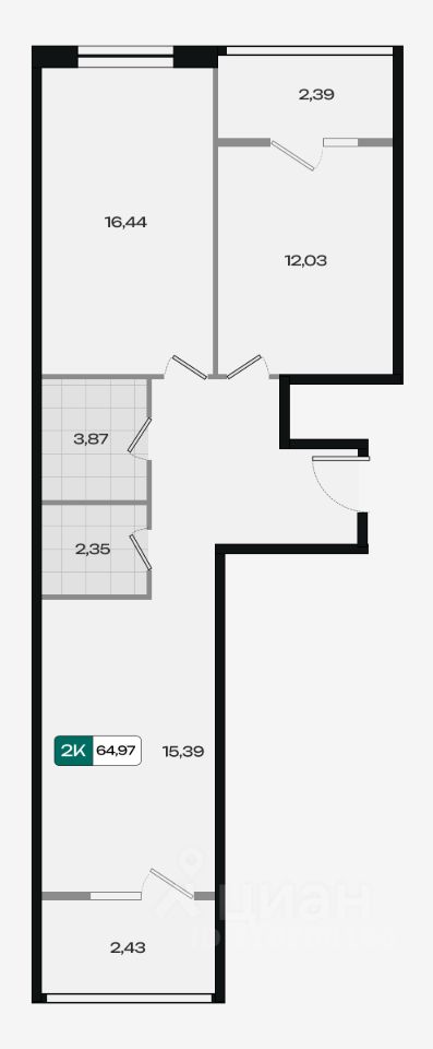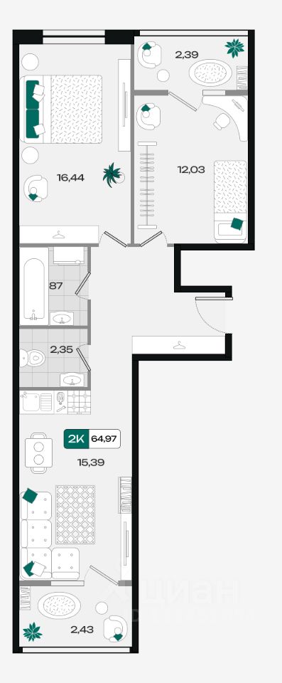 Общая площадь64,97 м²