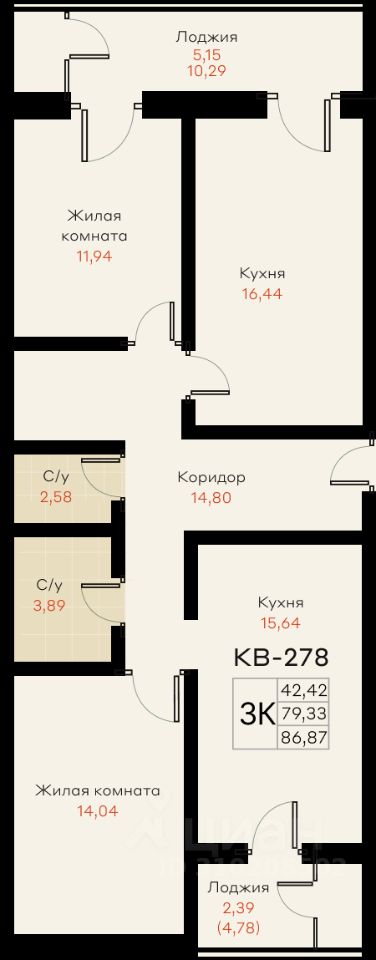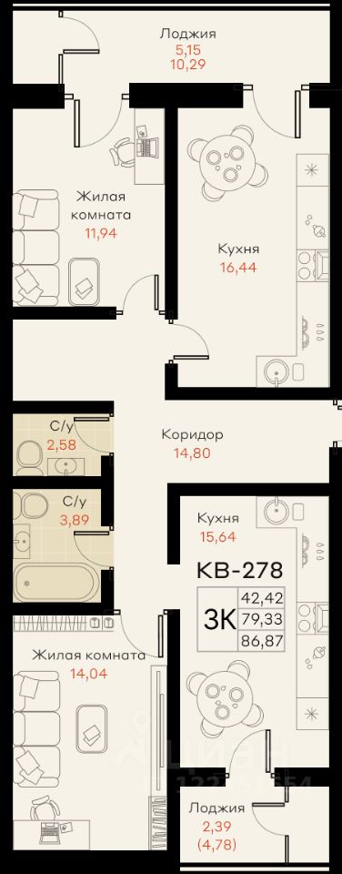 Общая площадь86,87 м²