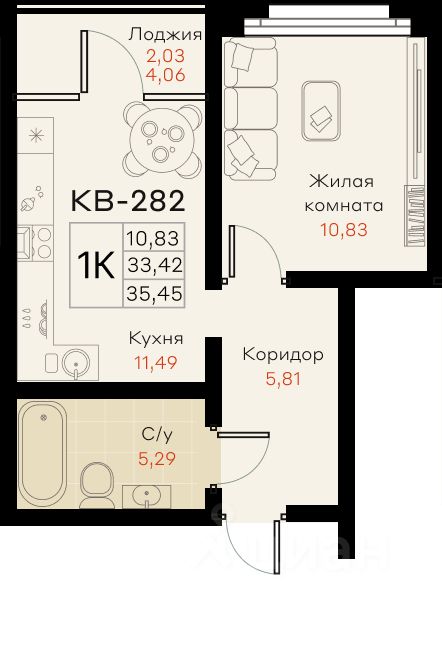 Общая площадь34,44 м²