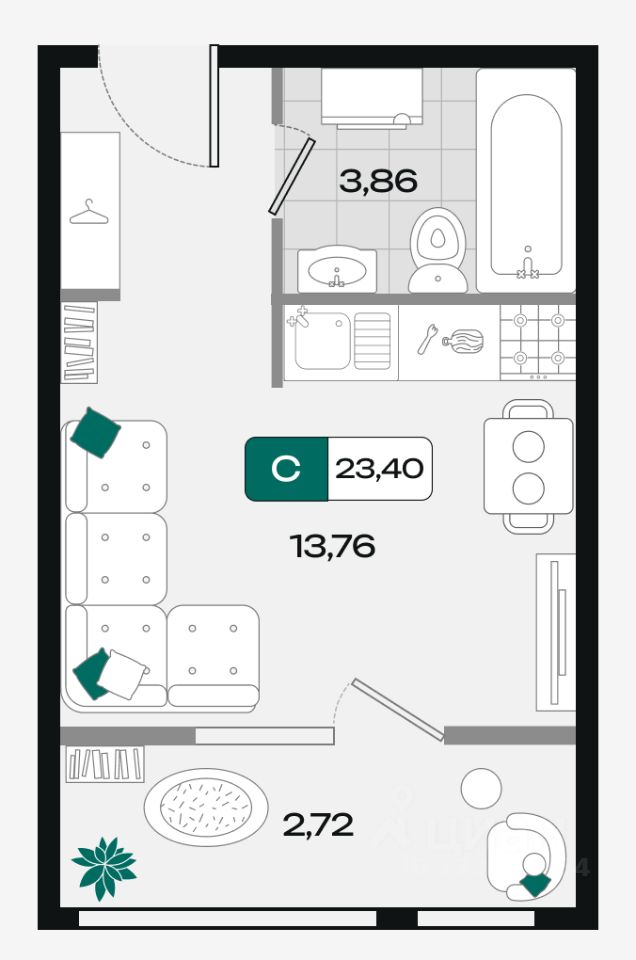 Общая площадь23,4 м²