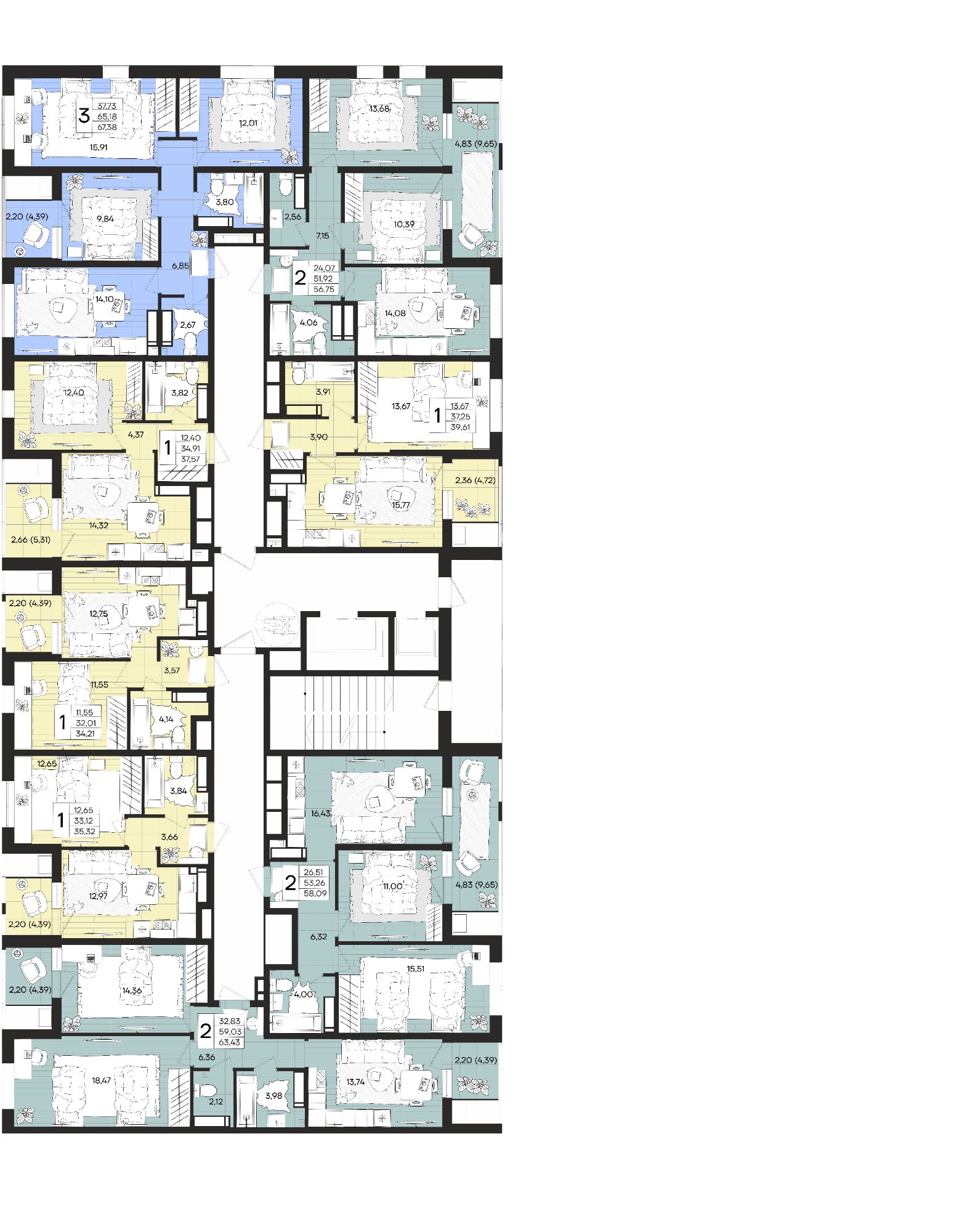 Первые этажи предназначены для коммерческой недвижимости, что обеспечивает удобство и доступность всех необходимых услуг.