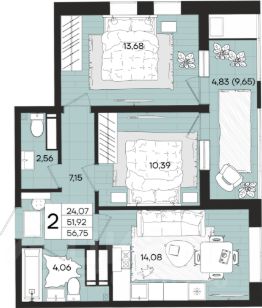 Общая площадь56,99 м²