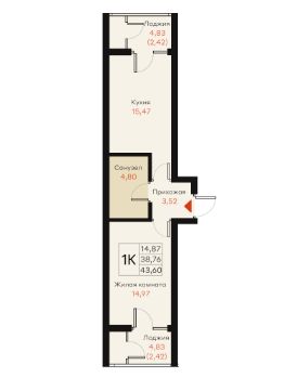 Жилая площадь14,9 м²