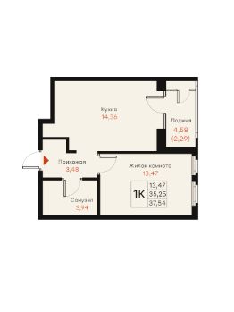 Общая площадь37,54 м²