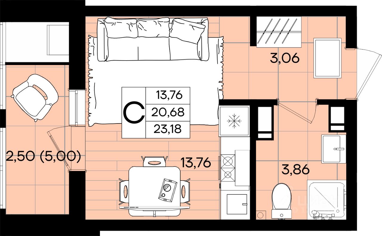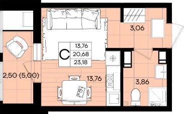 Общая площадь23,38 м²