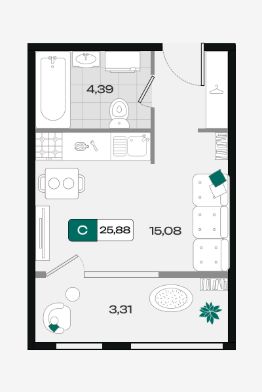 Общая площадь25,88 м²