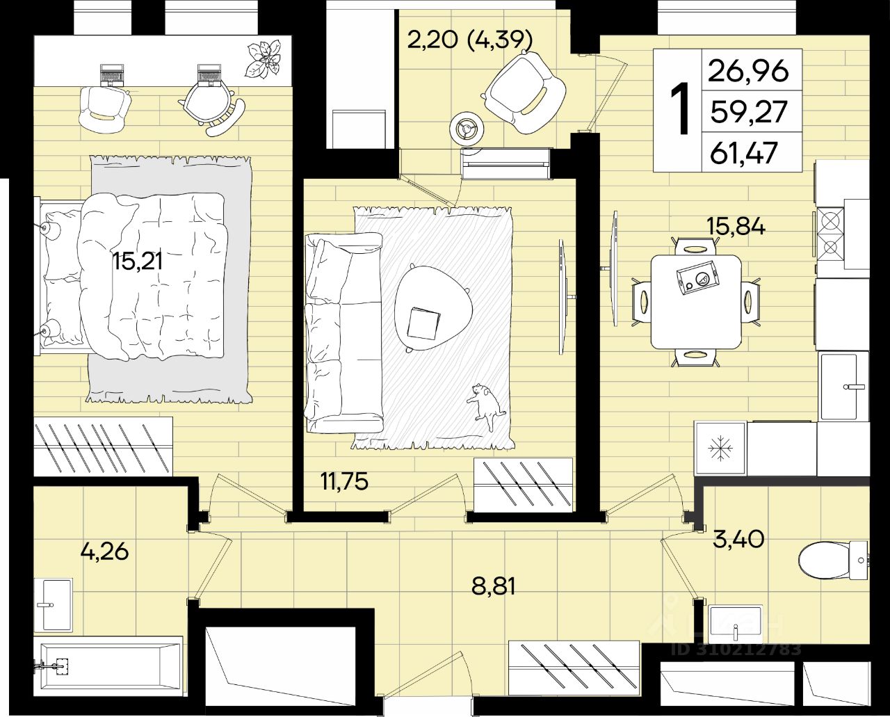 Высота потолков до 3,9 м наполняет пространство светом и воздухом, создавая ощущение свободы.