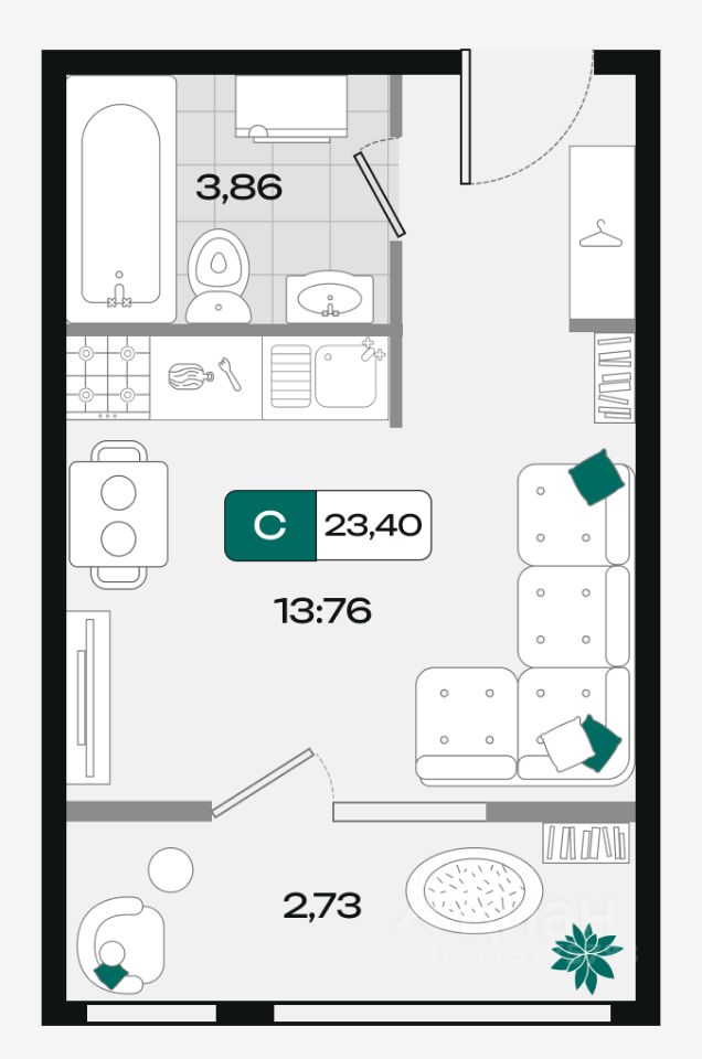 Общая площадь23,4 м²