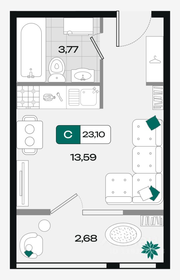 Общая площадь23,1 м²