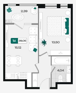 Общая площадь39,05 м²