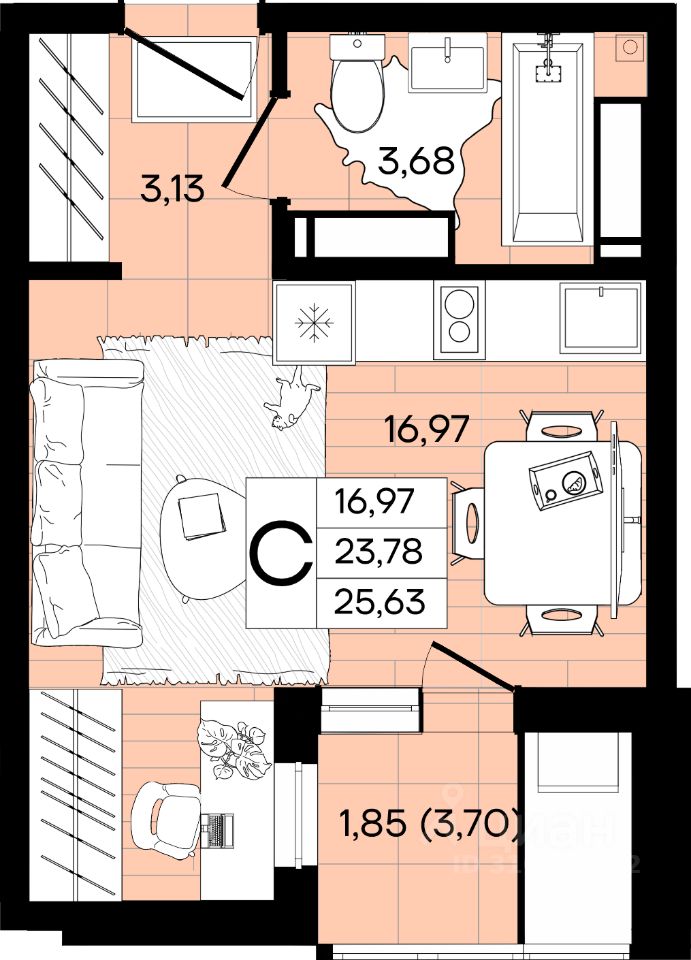 Общая площадь25,82 м²