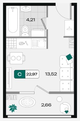 Общая площадь22,97 м²