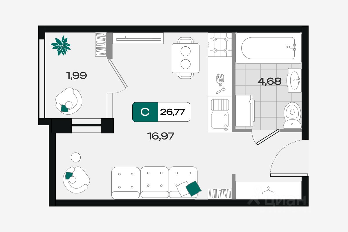 Общая площадь26,77 м²