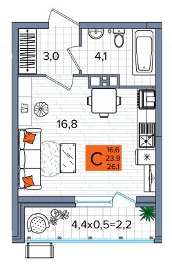 площадью 26.1 кв.м. на 8 этаже в 2-м подъезде - это оптимальный выбор для тех, кто ценит уют, качество и современный комфорт.