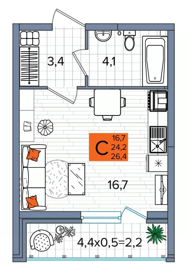 площадью 26.4 кв.м. на 2 этаже в 3-м подъезде - это оптимальный выбор для тех, кто ценит уют, качество и современный комфорт.