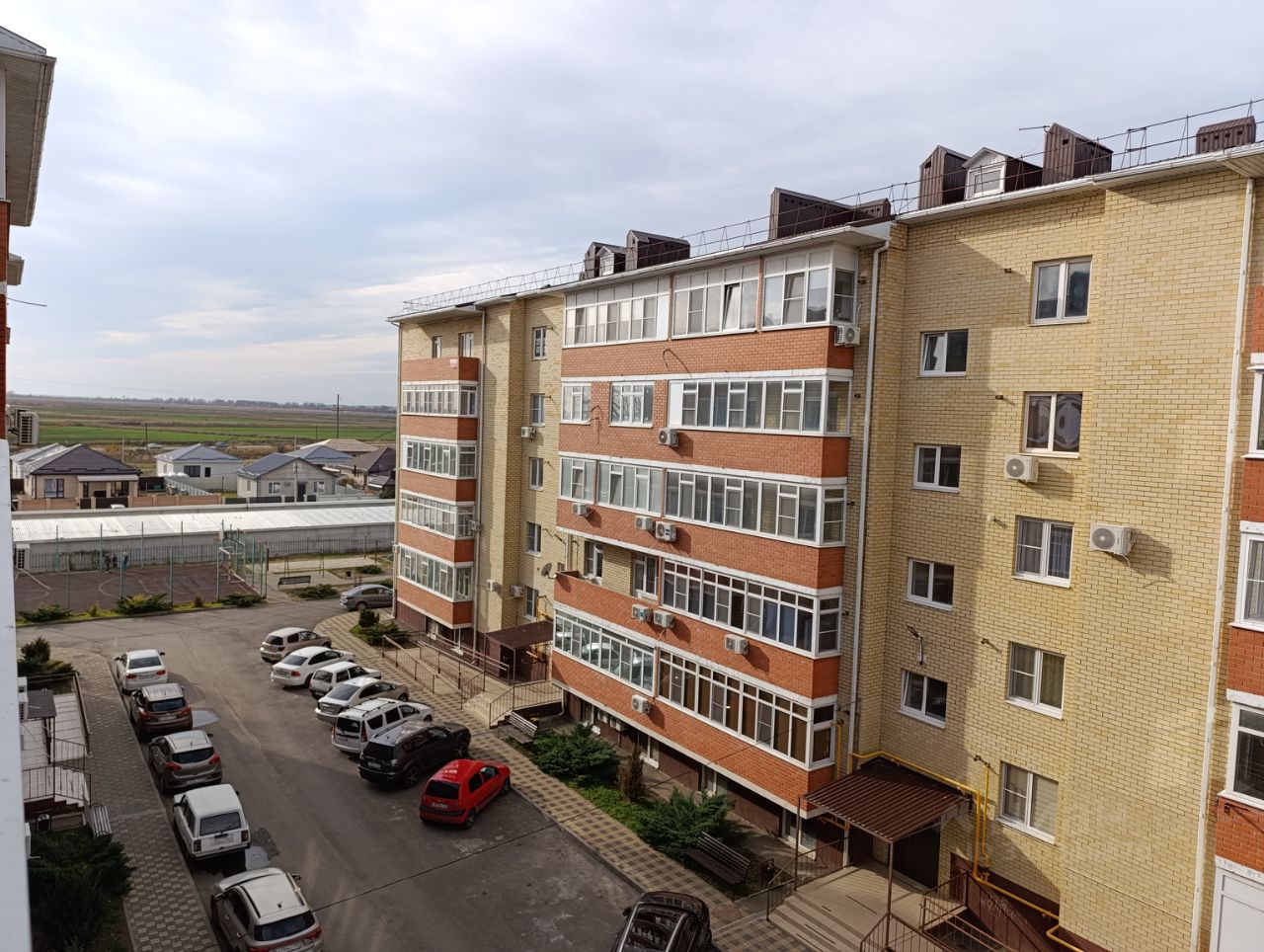 Вокруг дома открытая парковка, детская площадка, спортивная площадка.