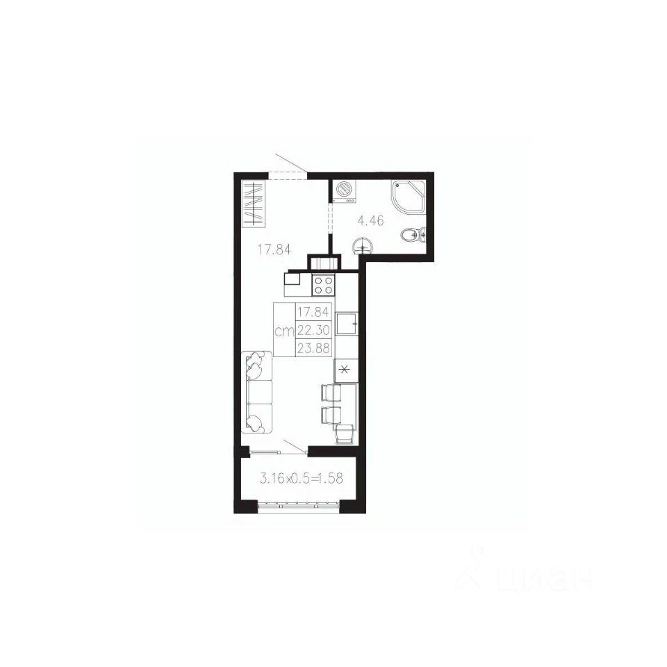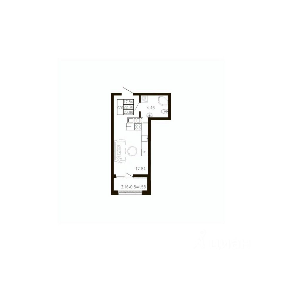 Общая площадь23,88 м²