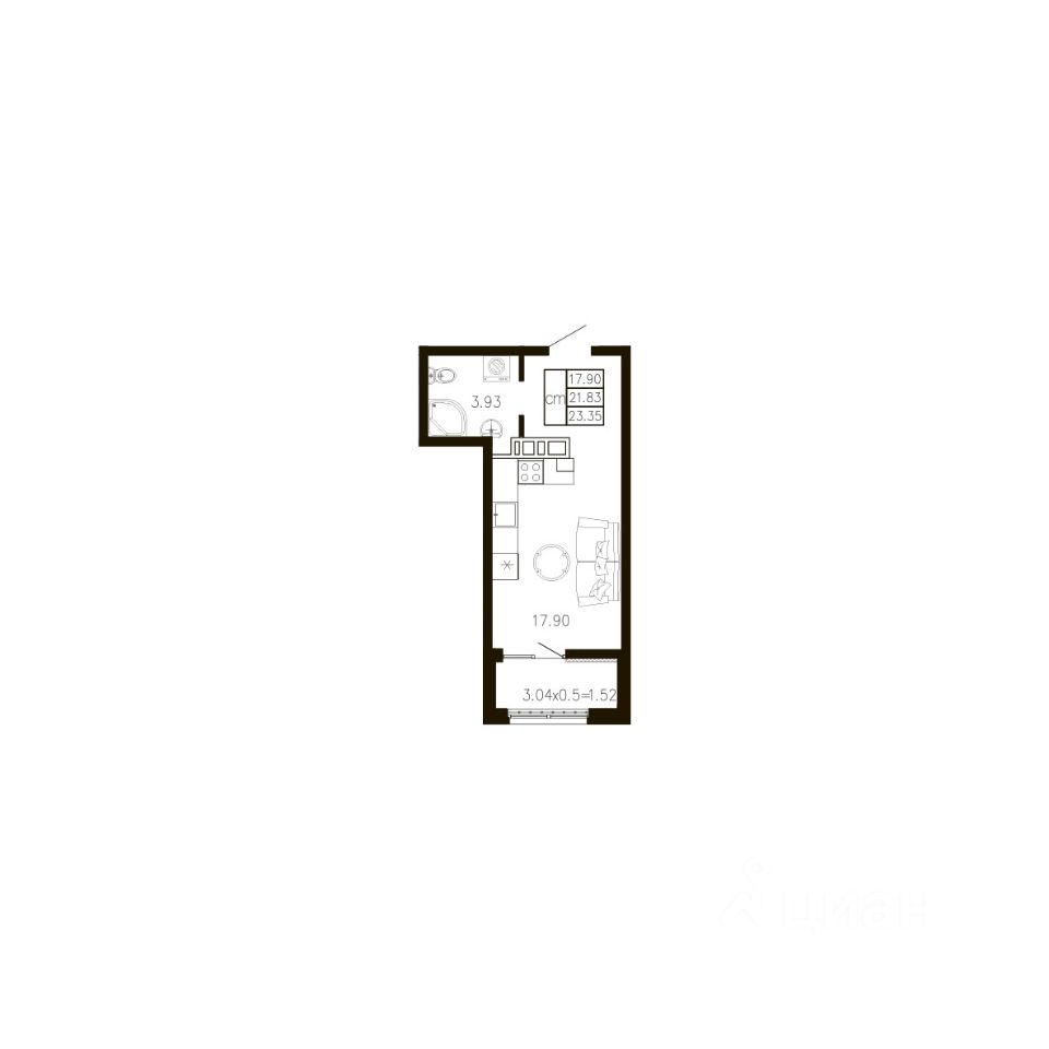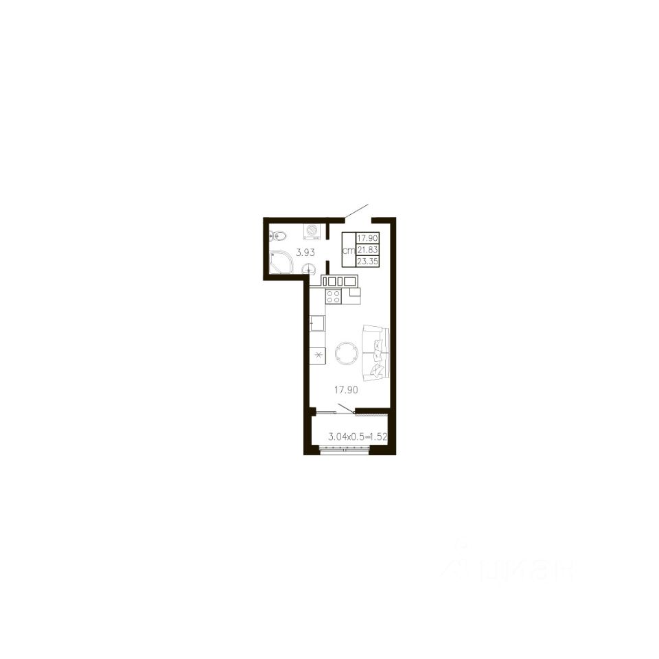 Общая площадь23,35 м²