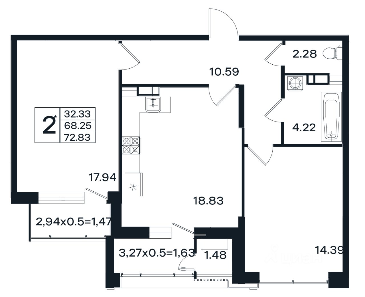 Ремонты от застройщика не предусмотрены. Квартира 86