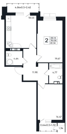 Ремонты от застройщика не предусмотрены. Квартира 195