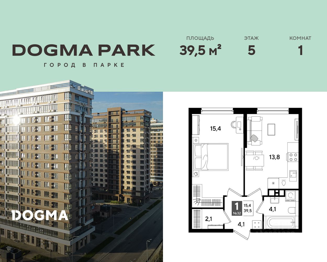 В продаже 1-комнатная квартира от застройщика! Мкр. "DOGMA PARK" г. Краснодар, Литер 20 Срок сдачи: 4 кв. 2027, общей площадью 39.5 кв.м., на 5 этаже.