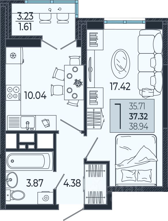 Продаётся 1 -комнатная квартира площадью 37,32 кв. м на 5 этаже в новом современном комплексе комфорт-класса от строительной компании "КОНТИНЕНТ ГРУПП" в одном из самых быстроразвивающихся районов города.