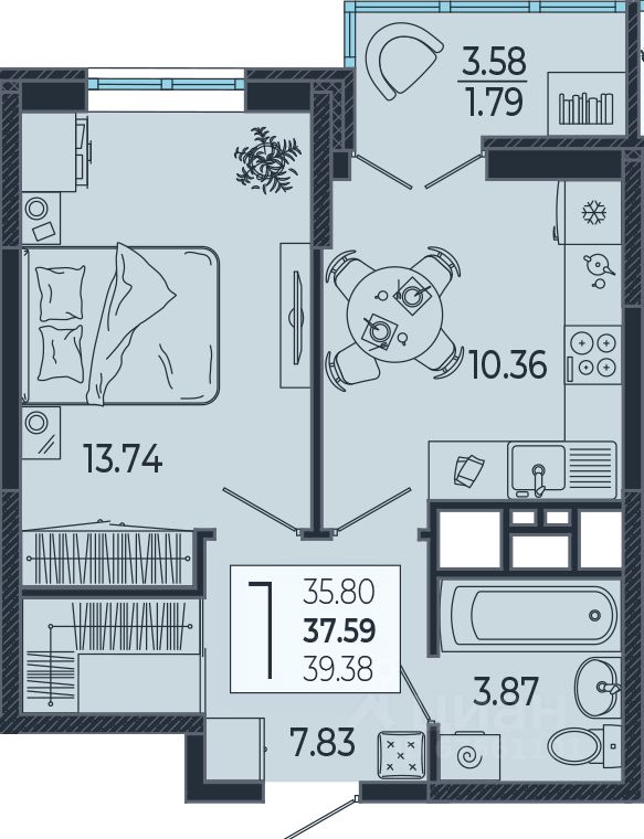 Продаётся 1 -комнатная квартира площадью 37,59 кв. м на 6 этаже в новом современном комплексе комфорт-класса от строительной компании "КОНТИНЕНТ ГРУПП" в одном из самых быстроразвивающихся районов города.