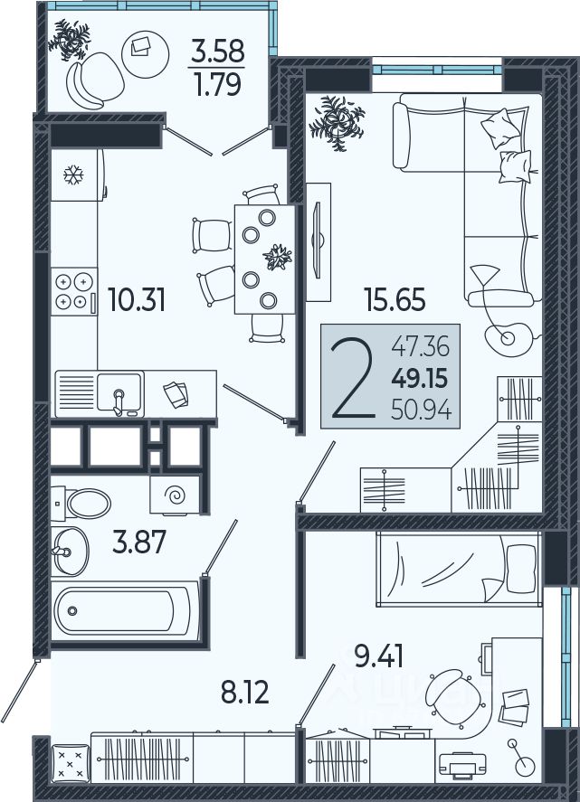 Продаётся 2 -комнатная квартира площадью 49,15 кв. м на 20 этаже в новом современном комплексе комфорт-класса от строительной компании "КОНТИНЕНТ ГРУПП" в одном из самых быстроразвивающихся районов города.
