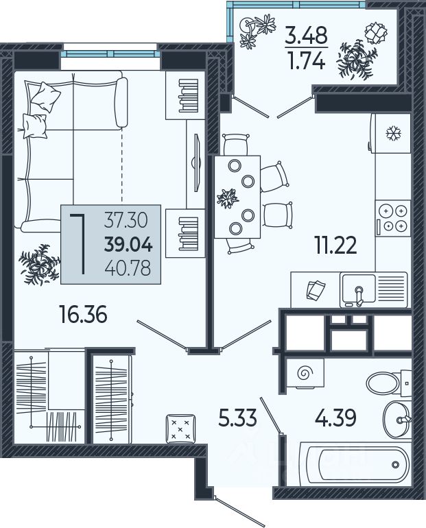 Продаётся 1 -комнатная квартира площадью 39,04 кв. м на 4 этаже в новом современном комплексе комфорт-класса от строительной компании "КОНТИНЕНТ ГРУПП" в одном из самых быстроразвивающихся районов города.