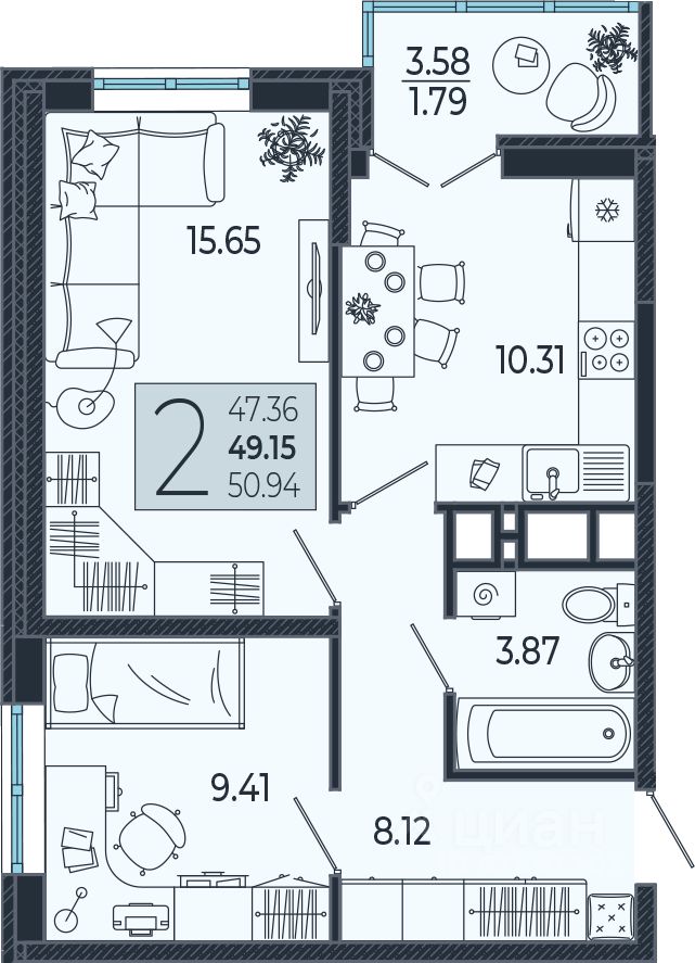 Продаётся 2 -комнатная квартира площадью 49,15 кв. м на 14 этаже в новом современном комплексе комфорт-класса от строительной компании "КОНТИНЕНТ ГРУПП" в одном из самых быстроразвивающихся районов города.