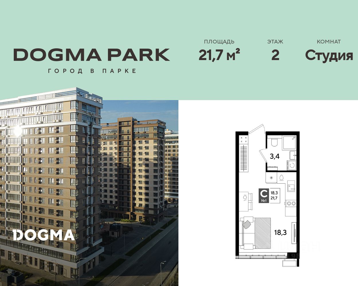 В продаже квартира-студия от застройщика! Мкр. "DOGMA PARK" г. Краснодар, Литер 35 Срок сдачи: 4 кв. 2027, общей площадью 21.7 кв.м., на 2 этаже.