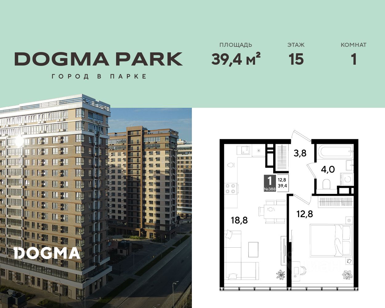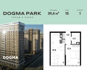 В продаже 1-комнатная квартира от застройщика! Мкр. "DOGMA PARK" г. Краснодар, Литер 34 Срок сдачи: 4 кв. 2027, общей площадью 39.4 кв.м., на 15 этаже.